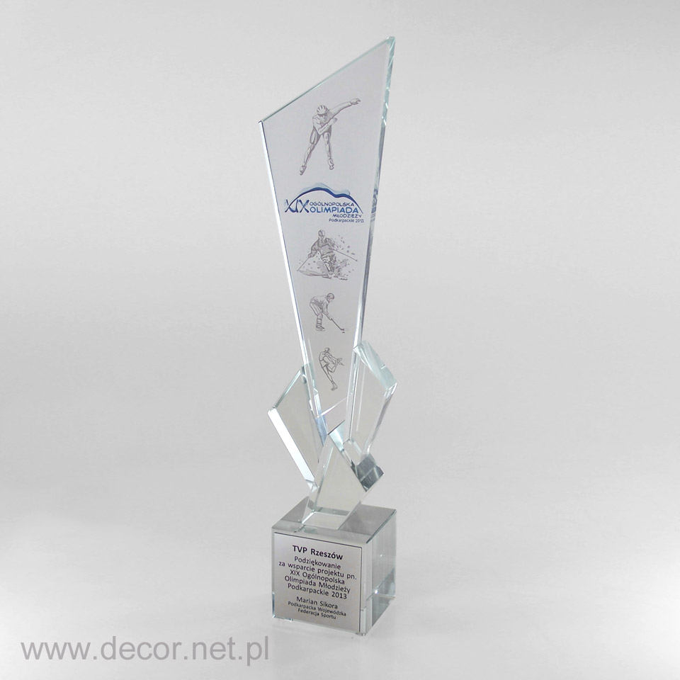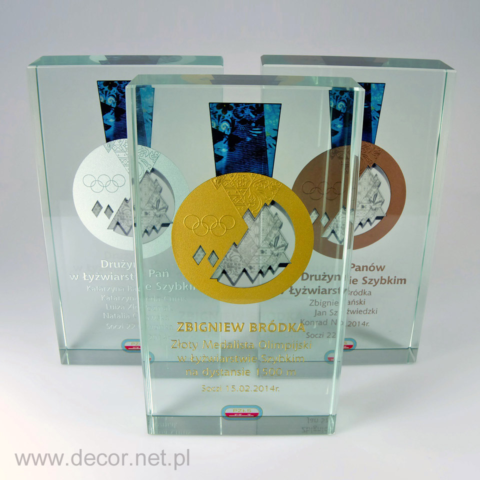 Propozycje statuetek nie muszą zawsze jednoznacznie kojarzyć się z konkretną dyscypliną sportową. Czasami logo imprezy jest tak intrygujące, że samo w sobie może stać się główną częścią statuetki, zapadając w pamięci zwycięzców, organizatorów, zawodników i kibiców. Firma DECOR podejmie się również zamknięcia w szkle grawerowanych replik medali zdobytych na mistrzostwach czy na olimpiadzie. W ten szczególny sposób można podziękować np. sponsorom, trenerom lub złożyć oryginalne gratulacje zwycięzcy.