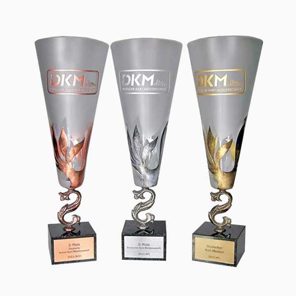 - trofea łączone z różnych materiałów jak: szkło szlifowane, szkło polerowane, szkło topione czyli fusing, brąz, stal malowana proszkowo, stal nierdzewna, chromonikiel, aluminium, mosiądz, drewno krajowe i egzotyczne, laminat grawerski, tworzywa sztuczne