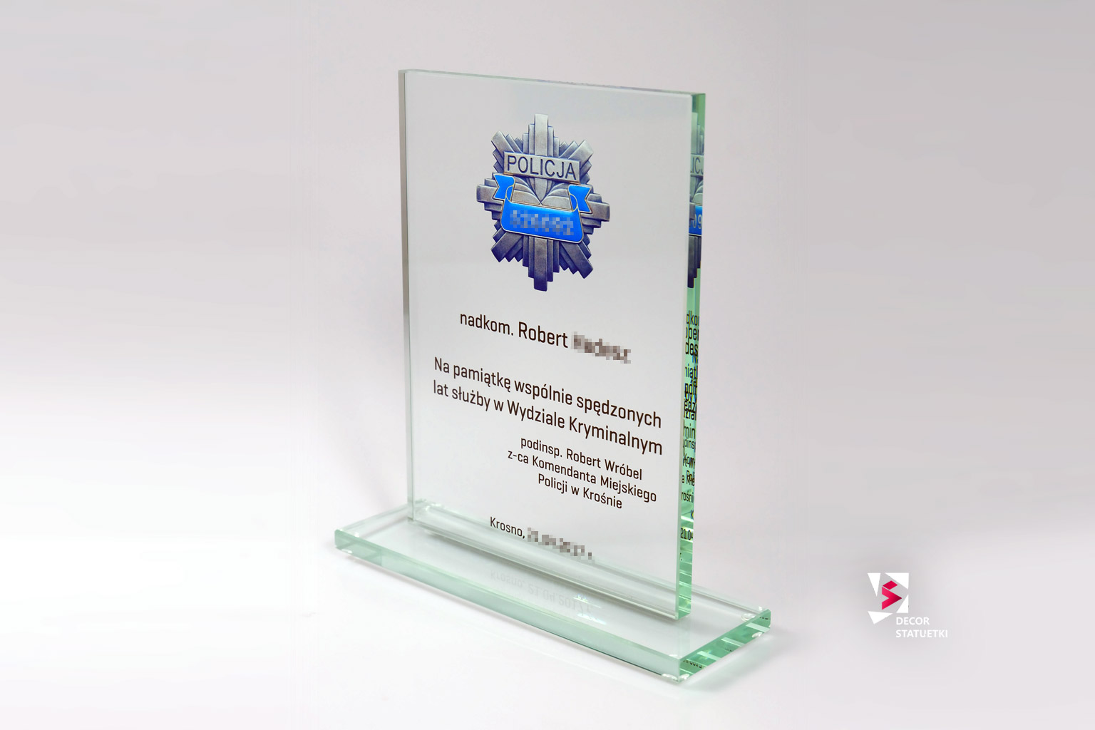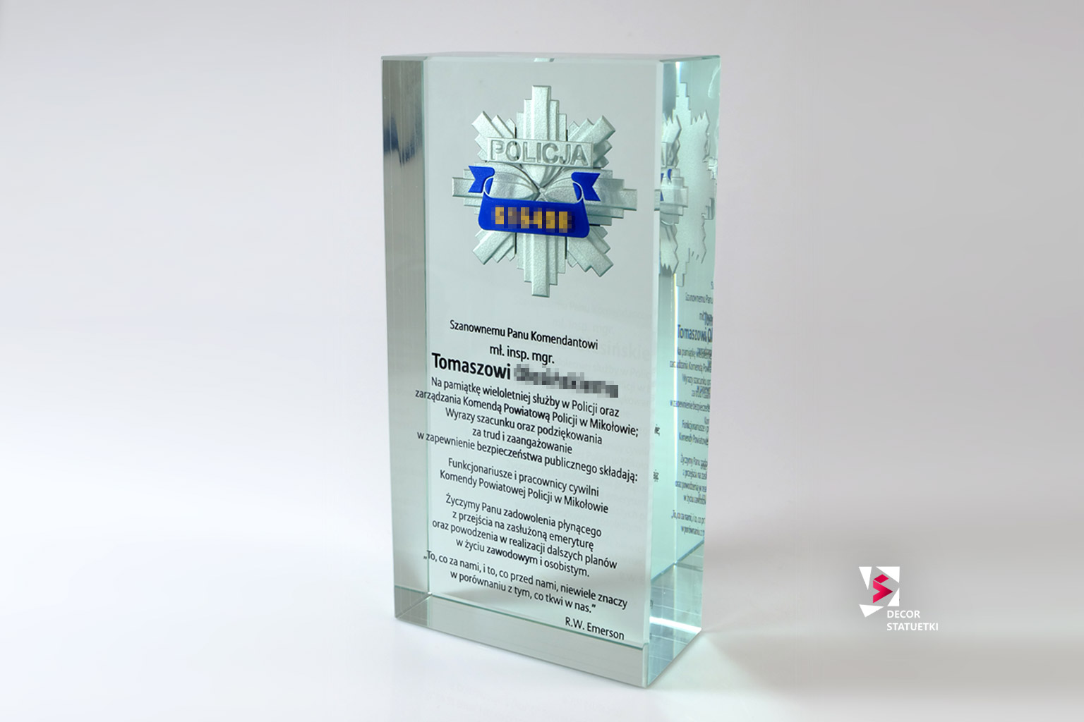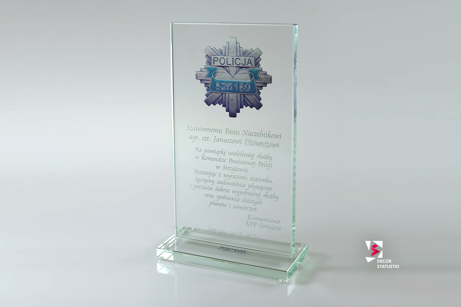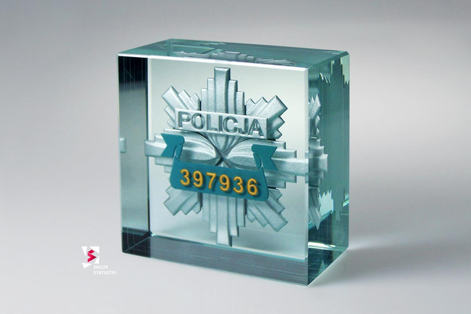 Szklana statuetka z grawerowaną odznaką policyjną B-03-X6