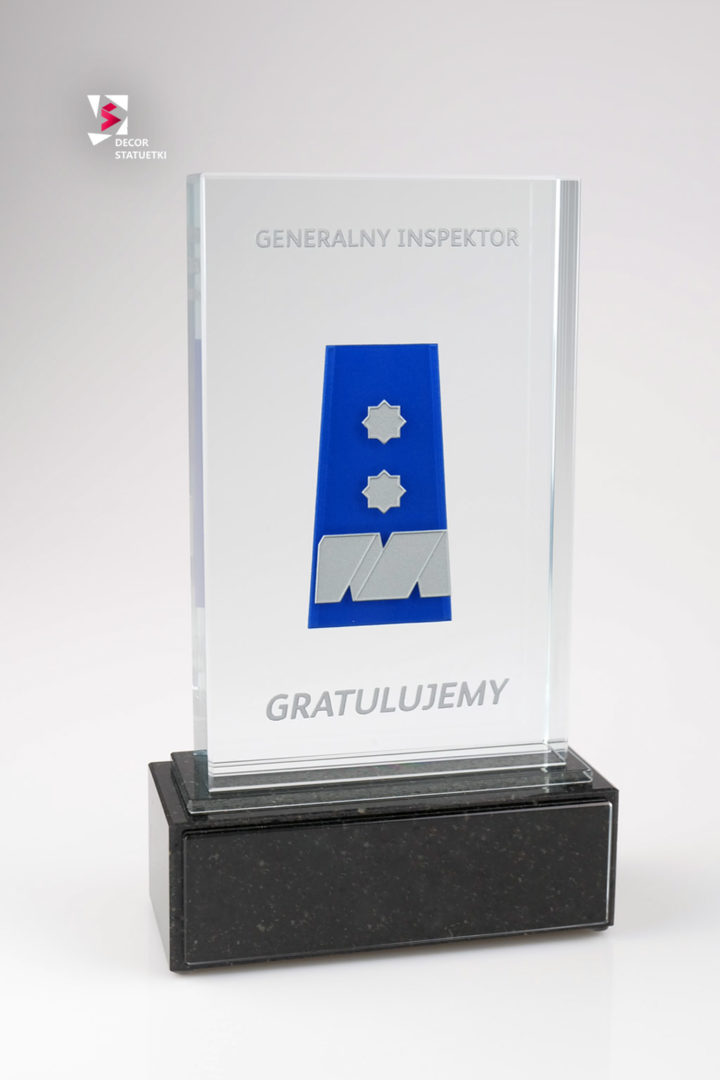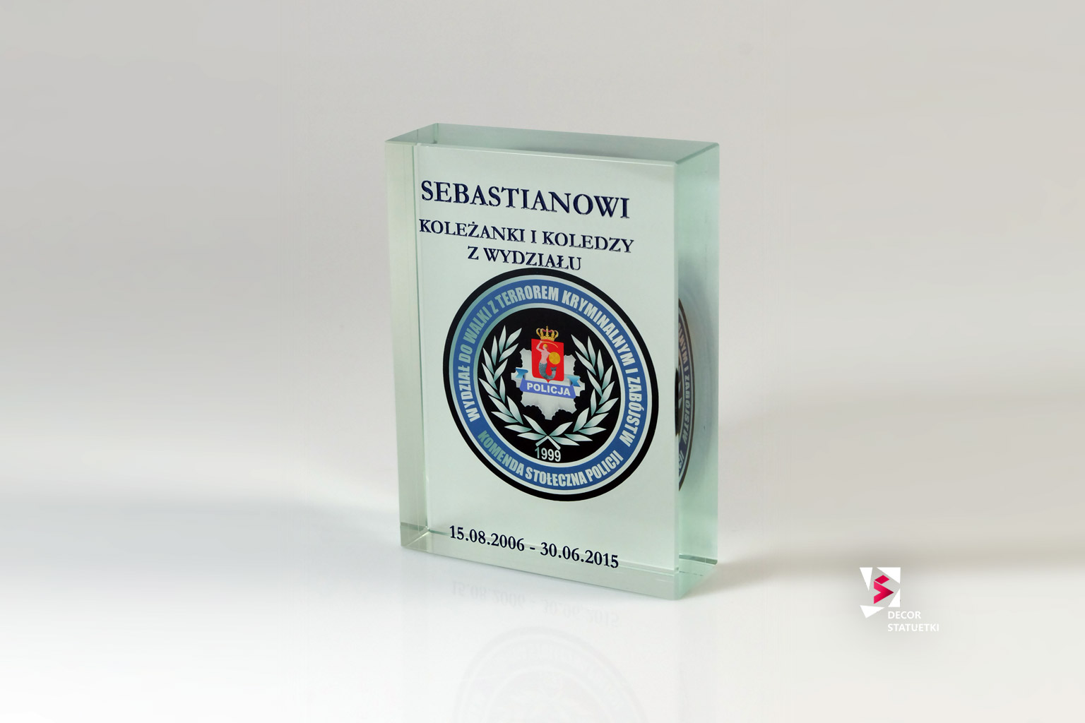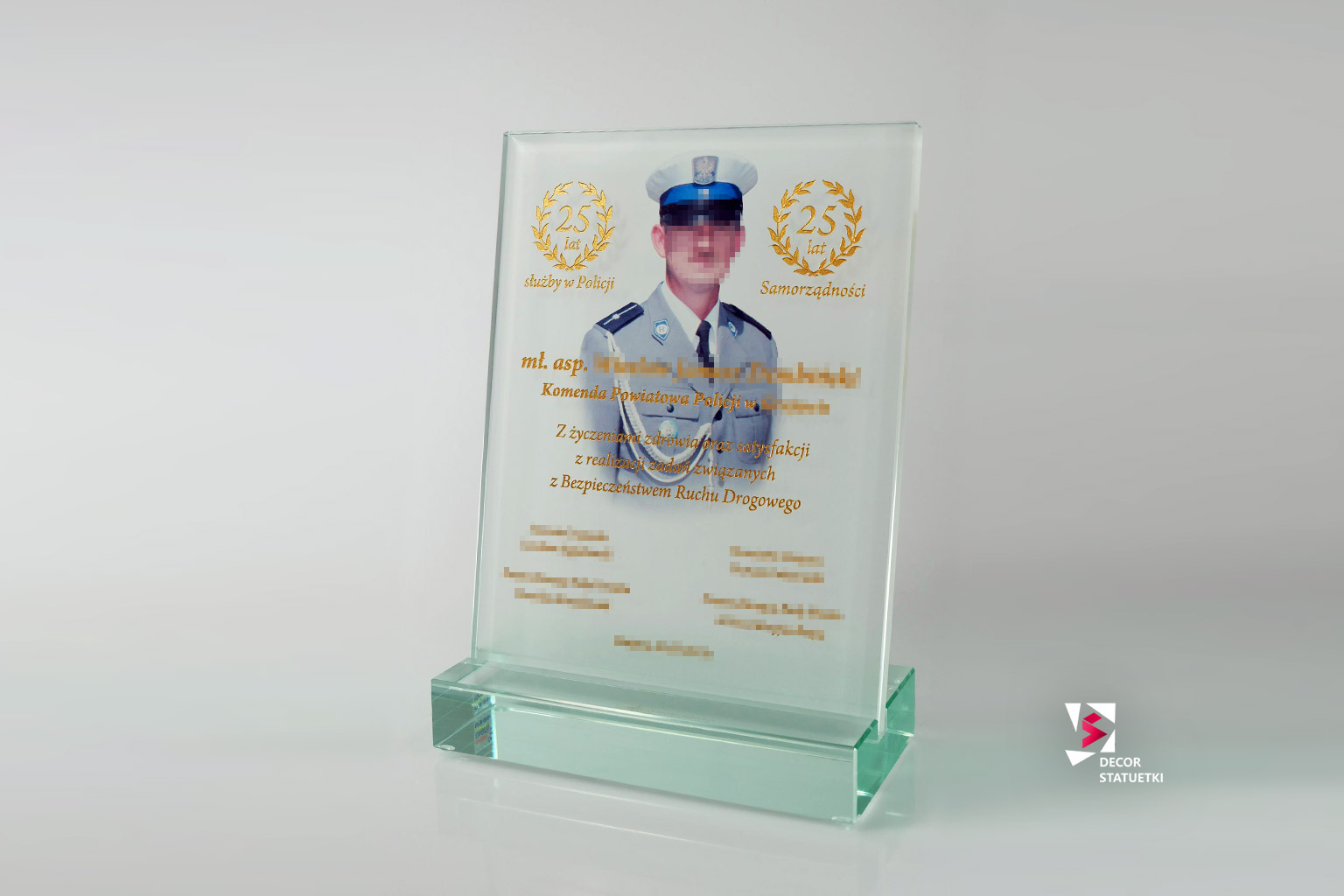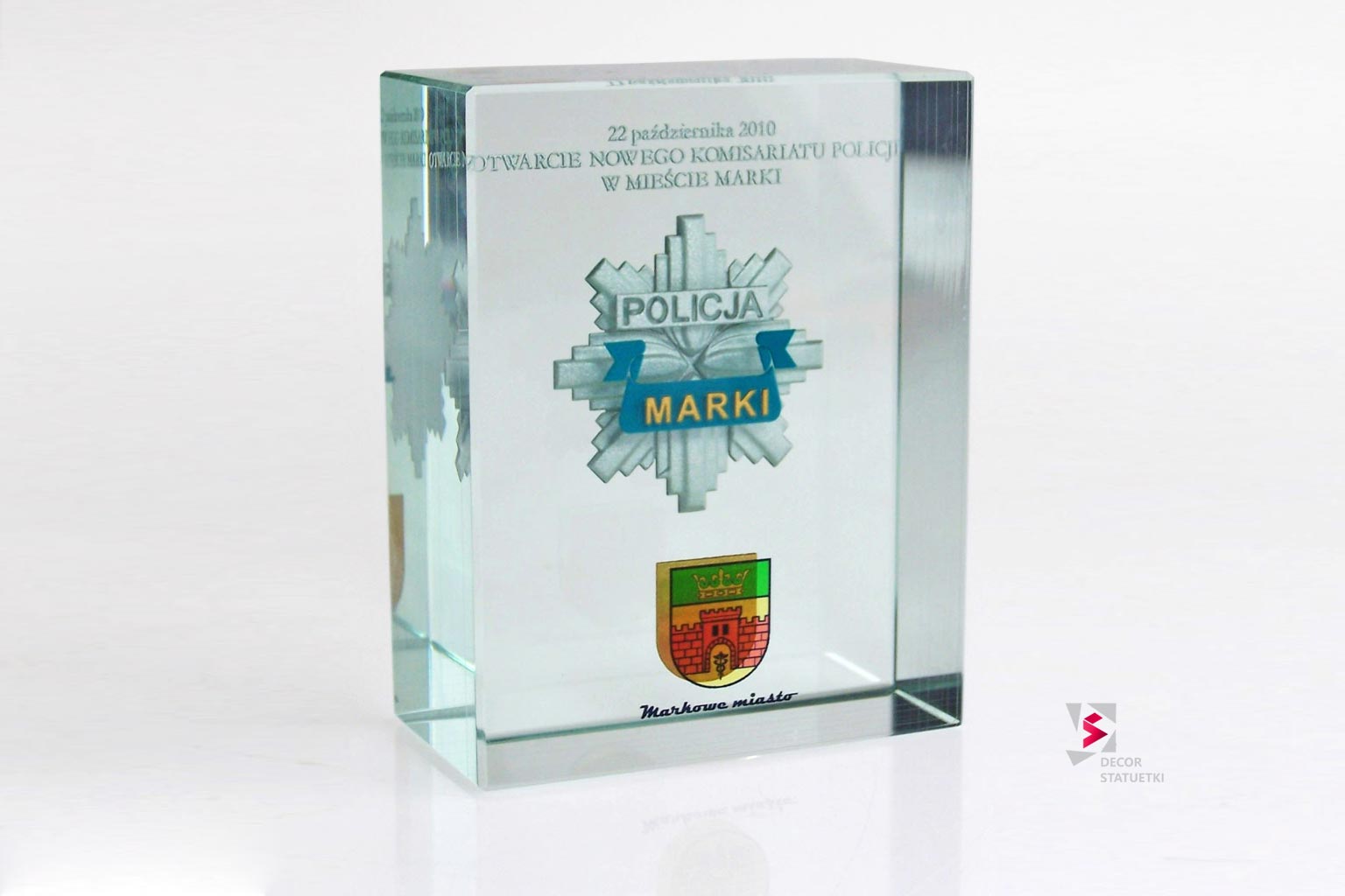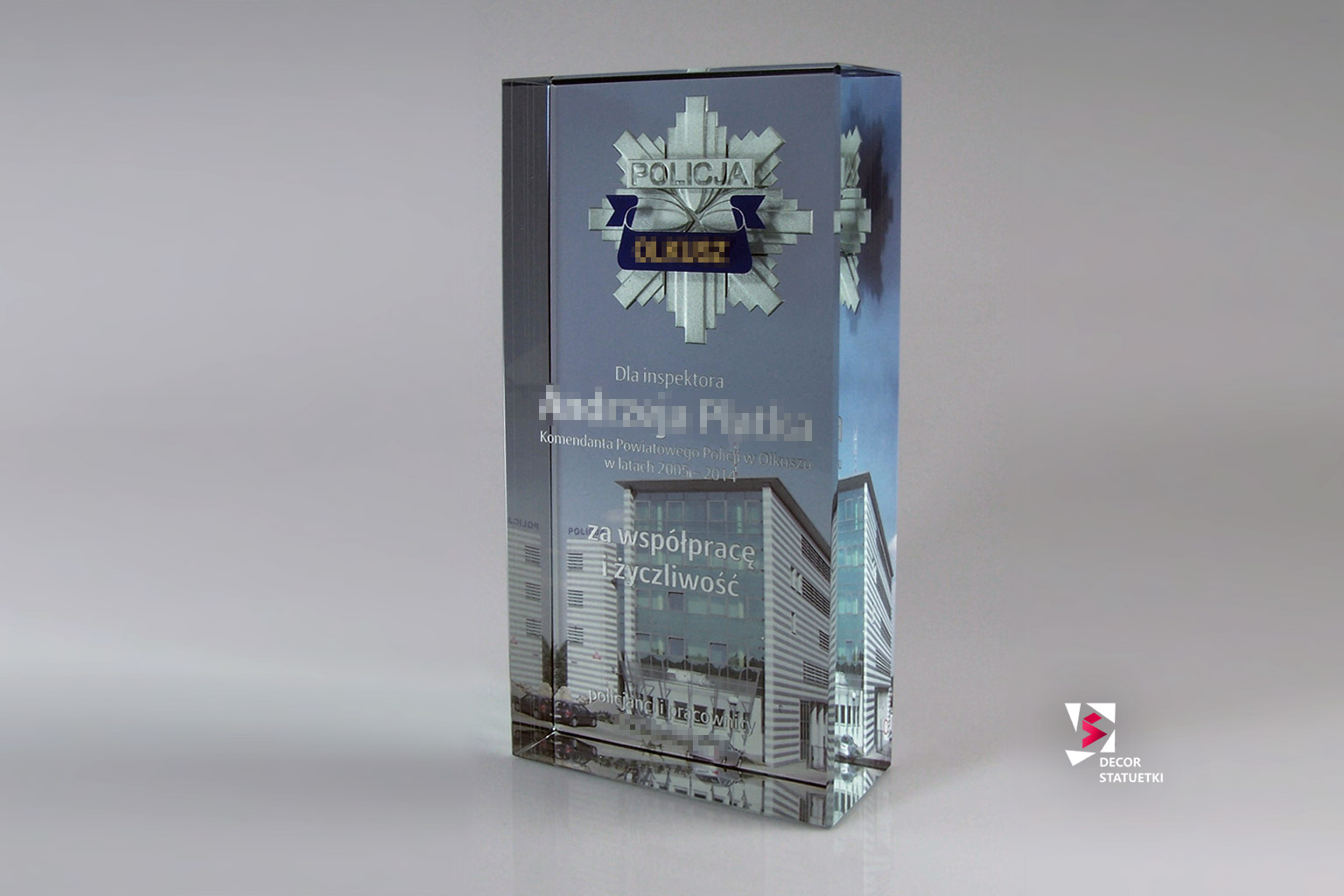 Szklana statuetka z grawerowaną odznaką policyjną B-03-X6