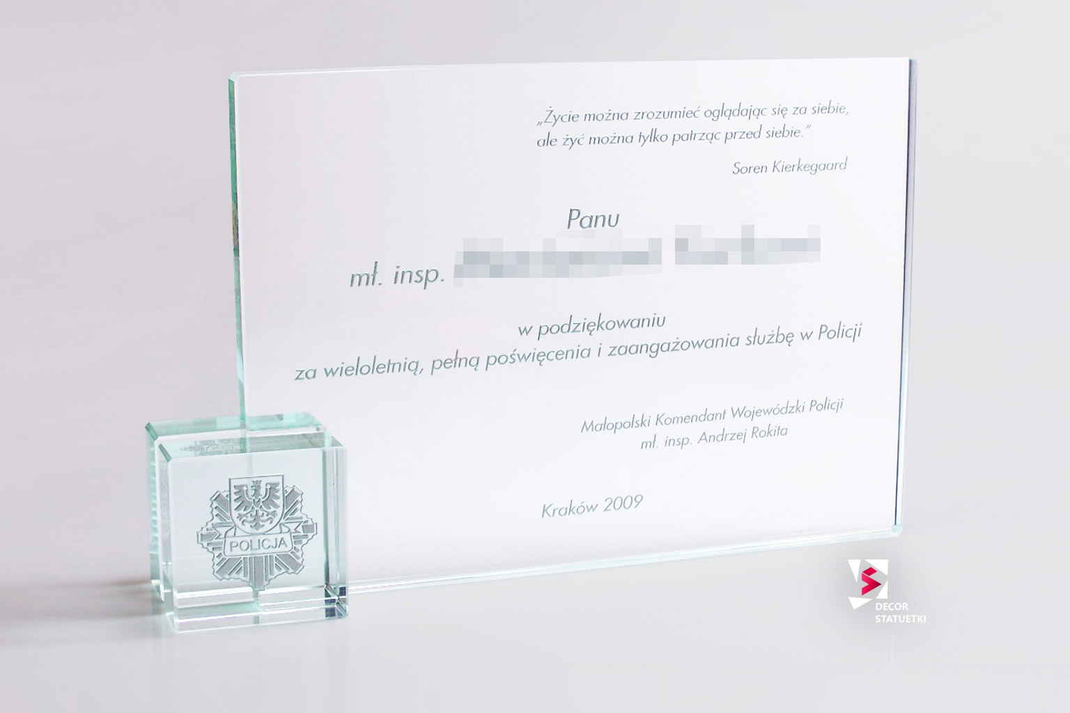 Oddział Prewencji Policji w Krakowie Szklana statuetka od Koleżanki i Kolegów